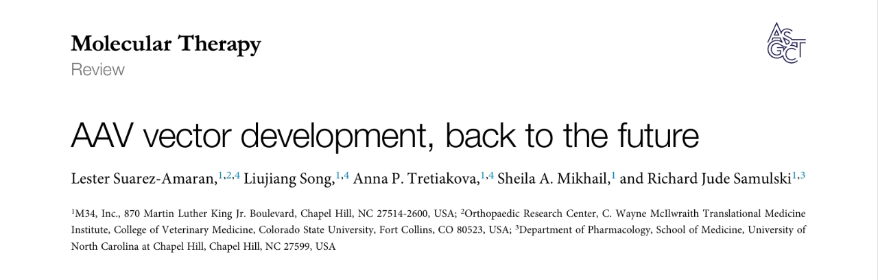 Suarez-Amaran L, Song L, Tretiakova AP, Mikhail SA, Samulski RJ.AAV vector development, back to the future. Mol Ther.2025May7;33(5):1903-1936. doi:10.1016/j.ymthe.2025.03.064. Epub2025Apr3. PMID:40186350; PMCID: PMC12126818.
