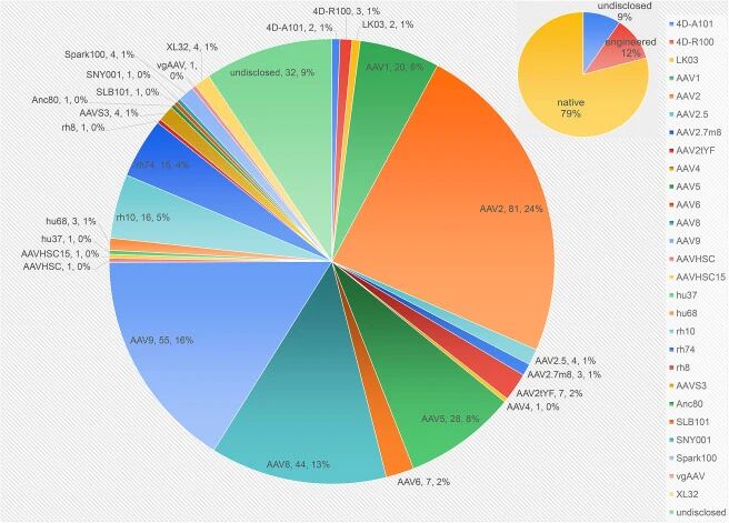 图4:AAV衣壳利用在340个临床试验中的分布