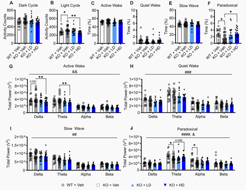 睡眠改善:治疗成功使小鼠在光照周期(睡眠期)的异常过度活动正常化,并剂量依赖性地增加了快速眼动睡眠(矛盾睡眠)的时间(图4F)。