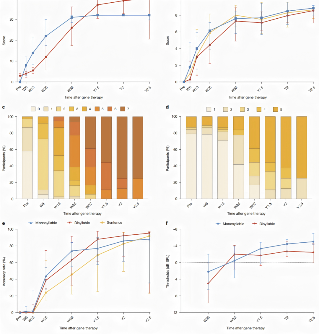 近期,《Nature》杂志发表了题为“Multicentre gene therapy for OTOF-related deafness followed up to 2.5 years”的最新研究论文。该研究由复旦大学附属眼耳鼻喉科医院舒易来教授团队领衔,联合国内多家机构共同完成。研究公布了一项覆盖国内8个临床中心的单臂试验结果,证实AAV1-hOTOF基因疗法在0.8至32.3岁的患者中均表现出良好的安全性,并在长达2.5年的随访期内维持了显著的听力与言语恢复疗效。这是目前已知针对先天性耳聋基因疗法队列规模最大、随访时间最长的临床试验。