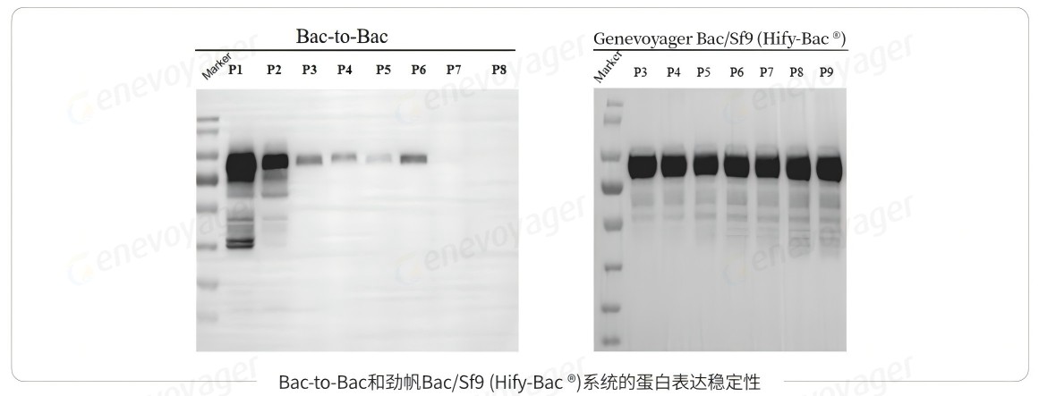 结果显示,劲帆Bac/Sf9(Hify-Bac ®)系统蛋白表达稳定性优于Bac-to-Bac系统。