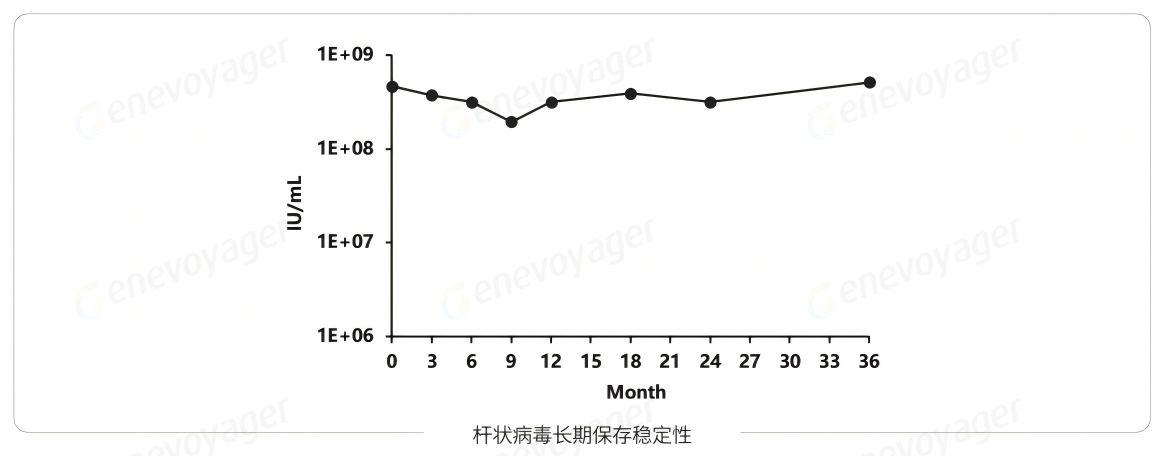 ≤-80℃下,杆状病毒的长期保存稳定性已持续监测36个月,毒种感染活性稳定性良好。