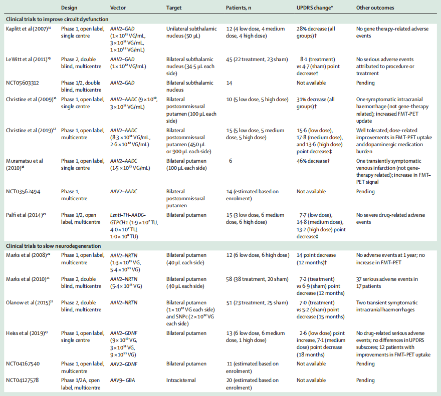 表1:帕金森病患者的基因治疗试验