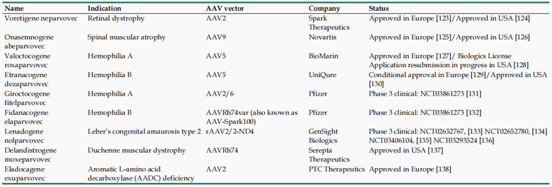 1 已获批或处于临床开发后期阶段的AAV基因疗法